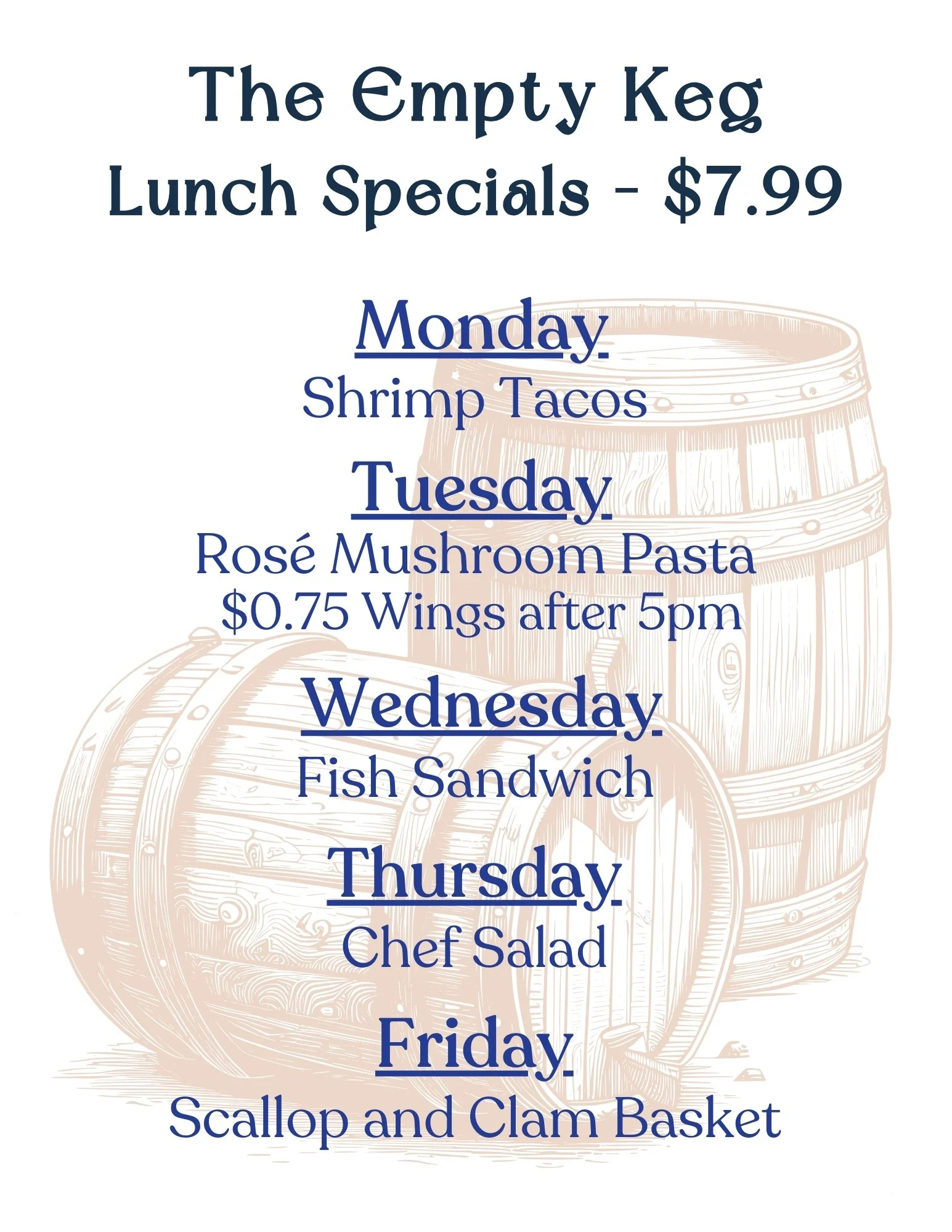 Monday through Friday starting at 11:00am, we serve our $7.99 lunch special until we run out.
