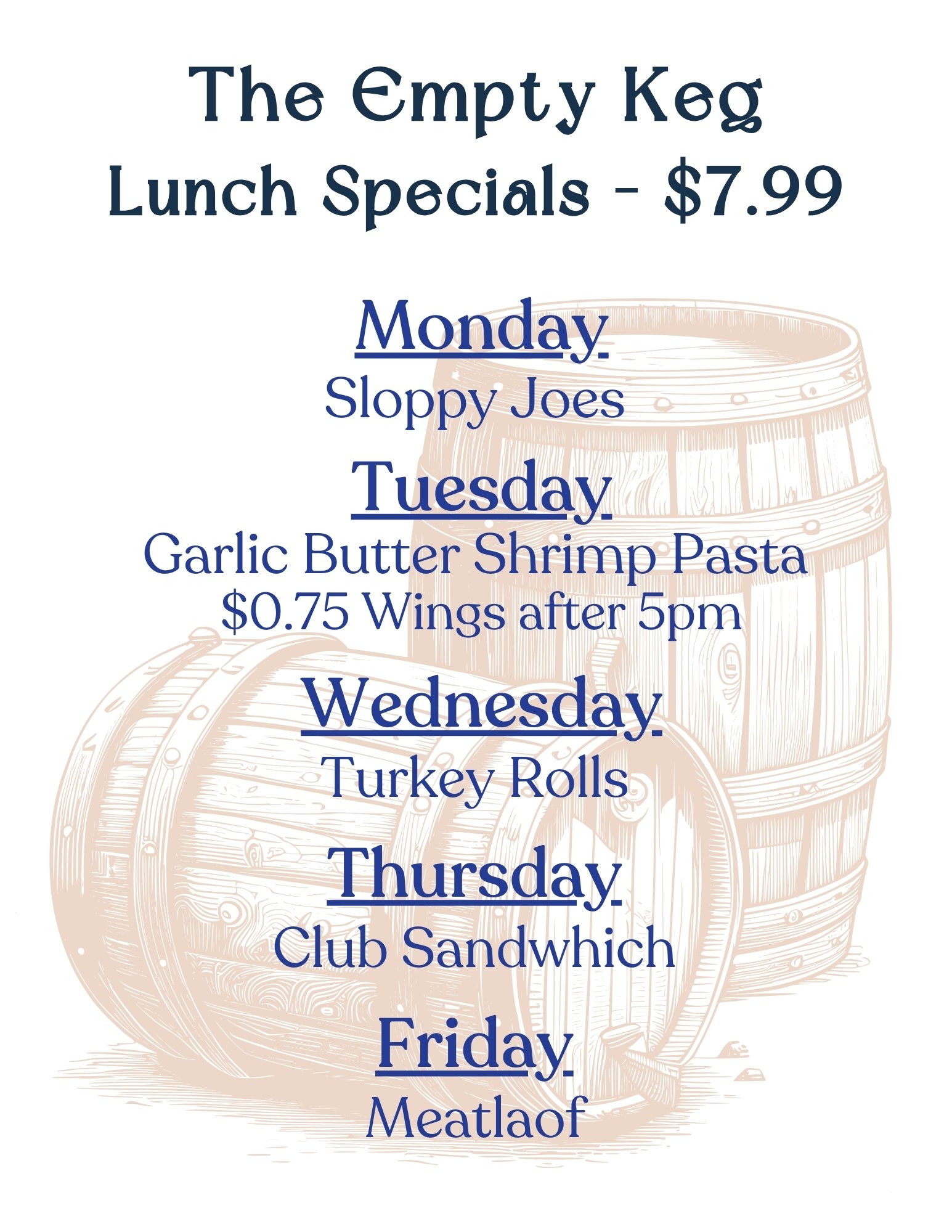 Monday through Friday starting at 11:00am, we serve our $7.99 lunch special until we run out.